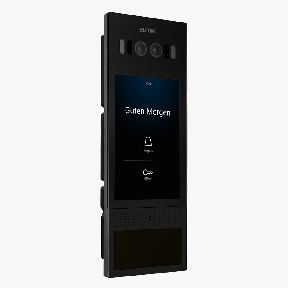 Die Zukunft ist digital. Auch in der Türkommunikation. Das erhöht die Sicherheit, verschlankt den administrativen Aufwand und kann sehr gut aussehen: wie im Fall der Außenstation Elcom motion. Das edle, schwarze Touch-Display ist eine absolut zeitgemäße Visitenkarte für Wohn- oder Bürogebäude. Besonders geeignet ist Elcom motion für größere Objekte mit bis zu 256 Wohnungen mit häufigem Mieterwechsel, da sie sich nahtlos in das digitale Gebäudekonzept integrieren lässt.