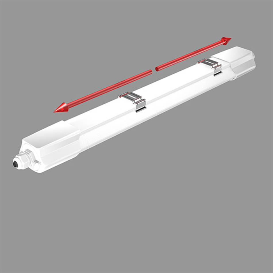 Als 1:1 Ersatz für Leuchtstofflampen ersetzt PLANOX ECO bis zu 2 x 58 W und sorgt so für eine Energieeinsparung bis zu 63 Prozent. Praktischen Vorteil der innovativen Feuchtraumleuchte bilden die im Lieferumfang enthaltenen frei beweglichen Montagebügel aus Edelstahl: Sie ermöglichen eine flexible Installation und die Nutzung bereits vorhandener Bohrlöcher beim Austausch der Beleuchtungsanlage. Eine Durchgangsverdrahtung als Lichtband ist serienmäßig - bis zu 63 Leuchten können je nach Leistungsstufe angeschlossen werden. Dabei ermöglicht ein Drehverschluß ein werkzeugloses Öffnen und die beidseitige Kabelinstallation. Durchdacht bis ins kleinste Detail klappt so der Austausch „Alt gegen Neu“ und der Umstieg auf LED-Technologie mit geringstmöglichem Aufwand. Durch 320° homogene Lichtabgabe punktet PLANOX ECO durch zusätzliche Deckenaufhellung.