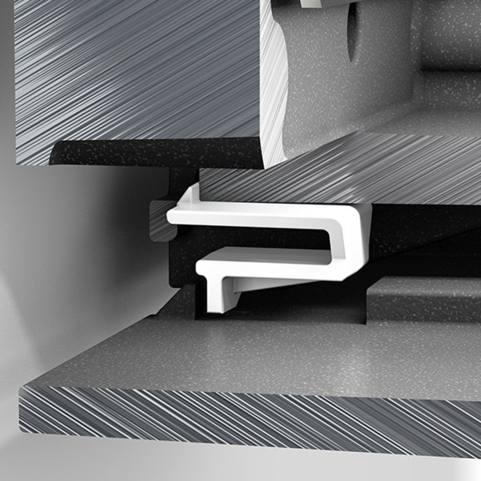 - Elegantes Erscheinungsbild ohne sichtbare Schrauben durch RZB Gravolock® System mit Schnappriegel als Diebstahlschutz